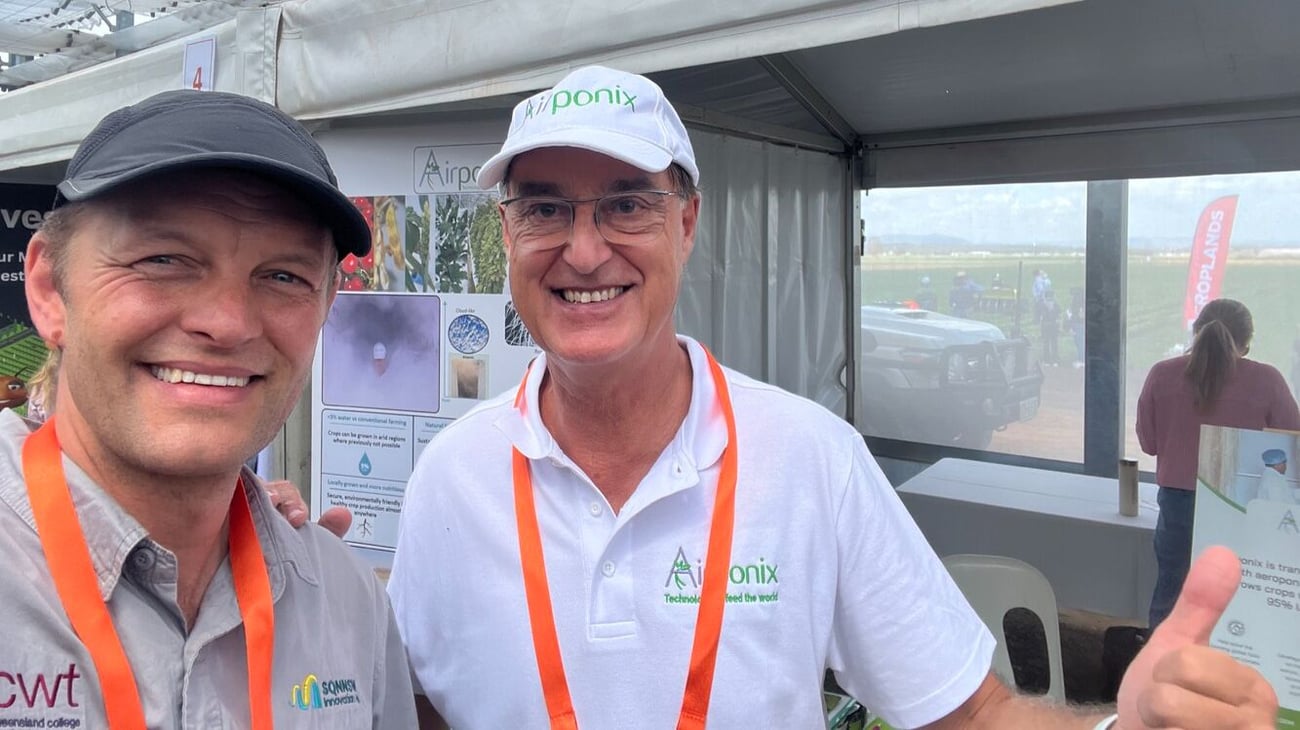 Wim Linström, Stanthorpe Node Manager for the SQNNSW Innovation Hub and F2F TEKFARM® advisor, recently brought a group of local producers - Stanthorpe AgNerds - for a visit to the Gatton AgTech Showcase. Producers explored cutting-edge tools, from drones for weeding to flexible solar panels, inspiring practical ideas and engaging conversations. Producers returned inspired, with new ideas, connections, and takeaways to apply on-farm. Pictured: Wim Linström with the founder of Airponix, one of the participants in the Farmers2Founders Land x Launch program.